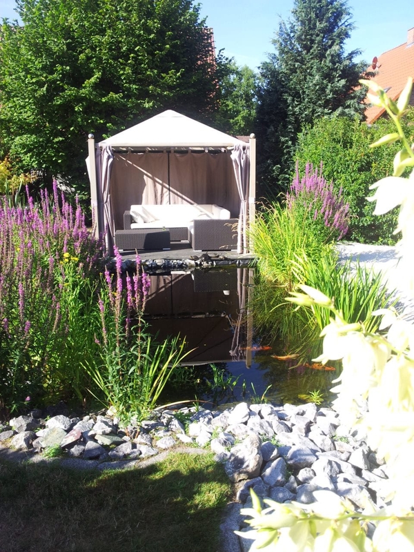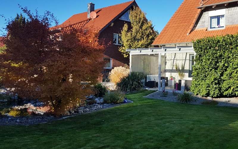 Der Garten wurde komplett neu angelegt, ein wunderschöner und 70 m² großer Gartenteich, eine Rasenfläche zum Spielen und verschiedene Sitzmöglichkeiten bieten Platz zum Erholen. Eine kleine Perle für Gartenliebhaber.