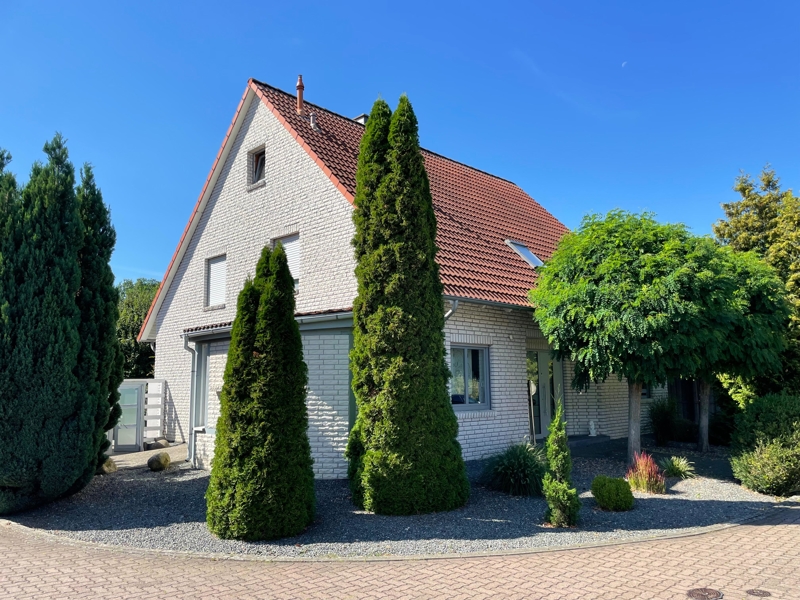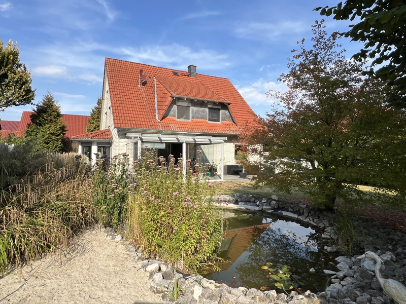 Zum Verkauf steht ein gepflegtes freistehendes Einfamilienhaus auf einem 777 m² großen Grundstück, 1999 massiv erbaut mit circa 186 m² Wohnfläche, einer schönen weißen Vollklinkerfassade, einem ausgebauten Satteldach mit Dachgauben, Kunststoff-ISO-Fenster mit Aussenrollläden (teilweise elektrisch), einer modernen Gaszentralheizung (Baujahr 1999), ein großes modernes Tageslichtbadezimmer mit großer Dusche, einem Gäste-Bad mit Dusche, einer großen Wohnküche mit Einbauküche, einem nachträglich angebauten Wintergarten mit Beschattung, einem kaum einsehbaren Gartengrundstück mit einem großen Schwimm- und Fischteich, einem Carport mit Abstellraum und vielen weiteren Details.Das Haus ist aktuell bewohnt und wird nach Absprache frei übergeben.