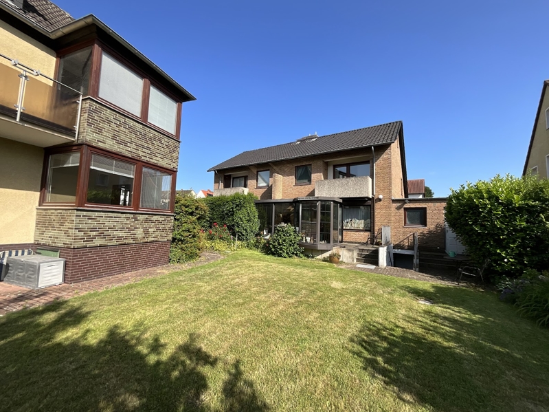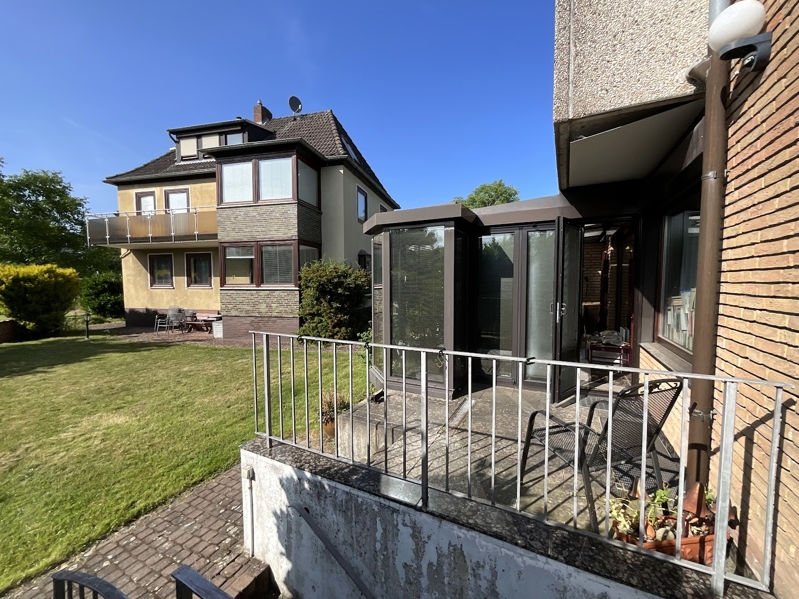 Die Doppelhaushälfte links ist vom Baujahr und Grundriss identisch. 1991 wurde diese Doppelhaushälfte um einen Wintergarten erweitert. Dieses Haus ist frei, eine Übergabe kann kurzfristig erfolgen.