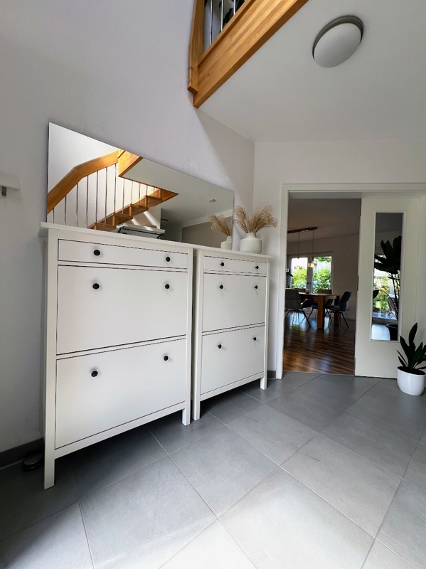 Der Spitzboden wurde nachträglich ausgebaut, zusätzlich gedämmt und die Dachschrägen verkleidet. Bislang wurde auf dem Spitzboden musiziert und der Platz für die Kinder als zusätzliche Spielfläche genutzt. Gleichzeitig bietet er weitere Abstellmöglichkeiten.