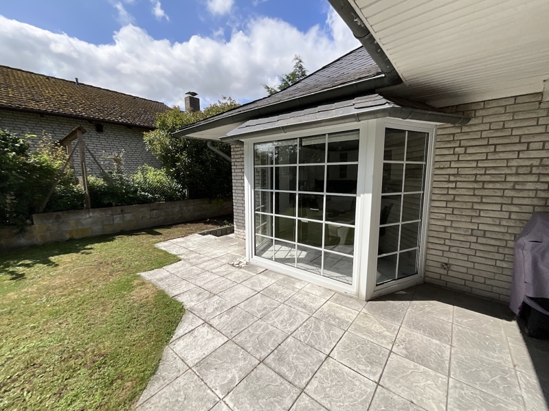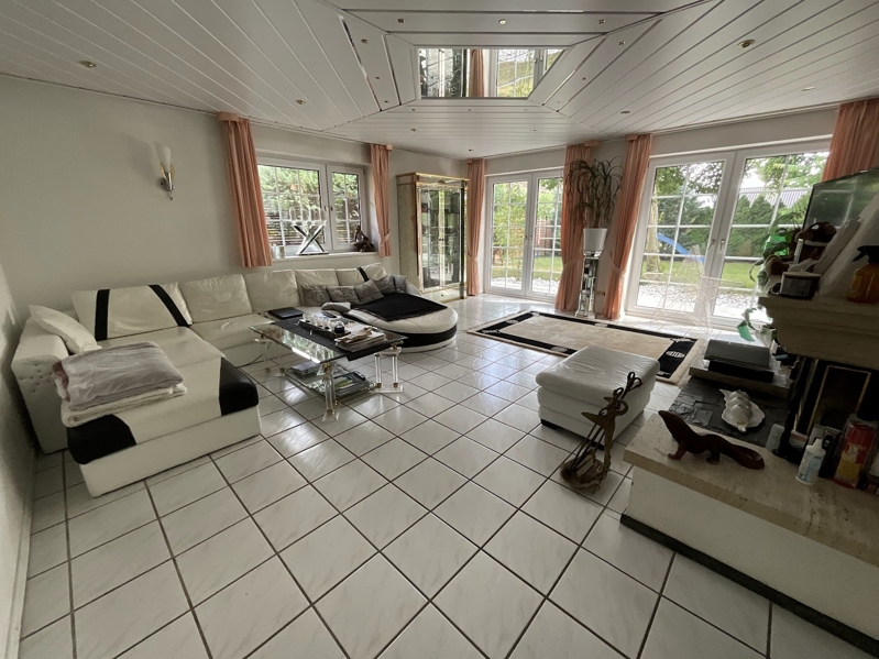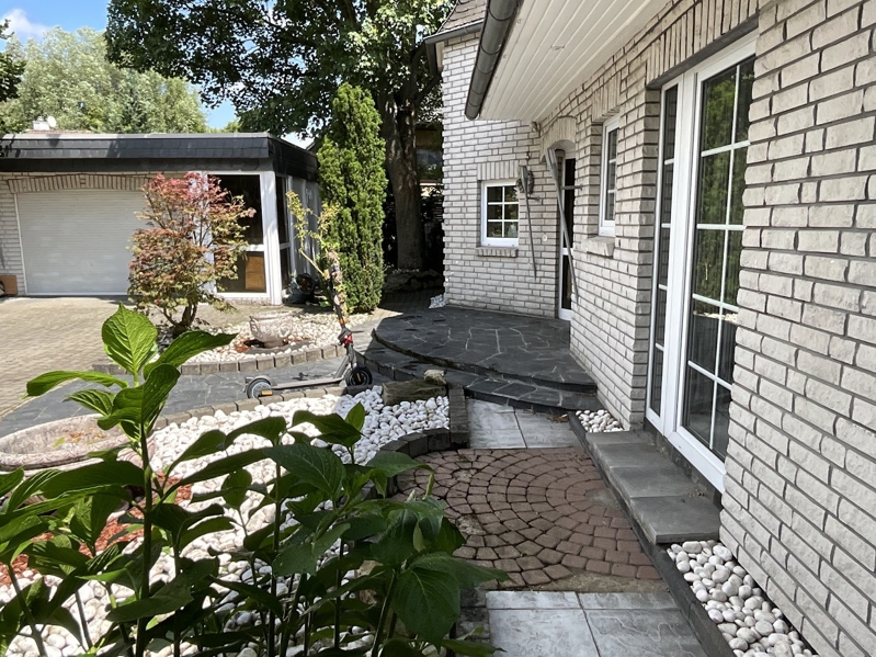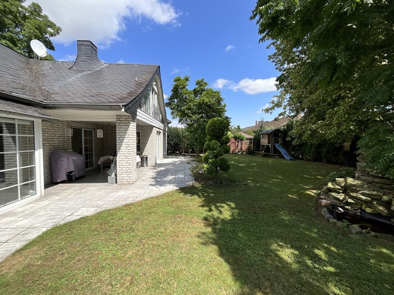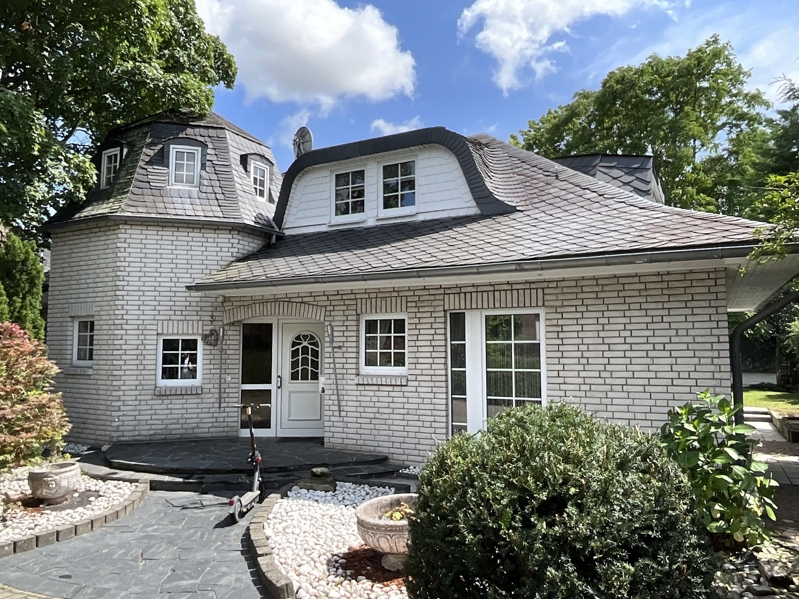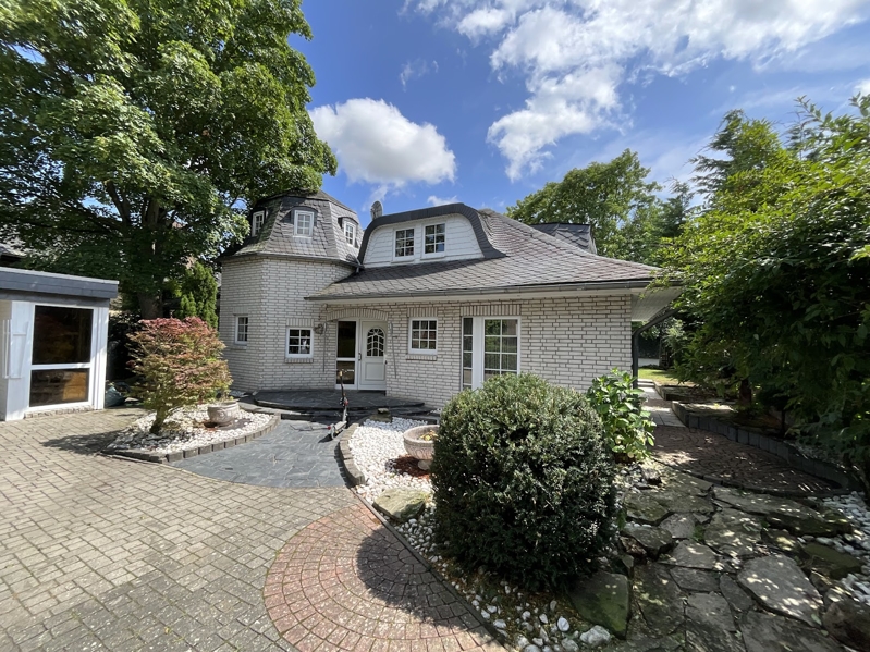 Freistehendes Einfamilienhaus mit ansprechender Architektur, 1990 massiv erbaut mit weißer Klinkerfassade, ausgebautem Satteldach (2014 renoviert), mit Schiefer- und Schwalbenschwanzgauben, Kunststoff-ISO-Fenstern mit Sprossen, Gaszentralheizung (neu 2019), mit Fußbodenheizung, Kamin, Einbauküche, zwei Bädern, großer Terrasse, zwei Balkonen, großer Garage und einem Gartenhaus in einem schön angelegten Garten in ruhiger Lage.Das Haus ist derzeit bewohnt, eine Übergabe kann nach Absprache auch kurzfristig erfolgen.